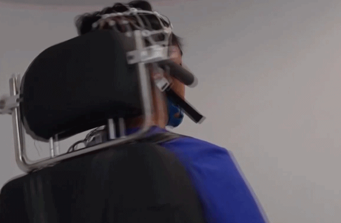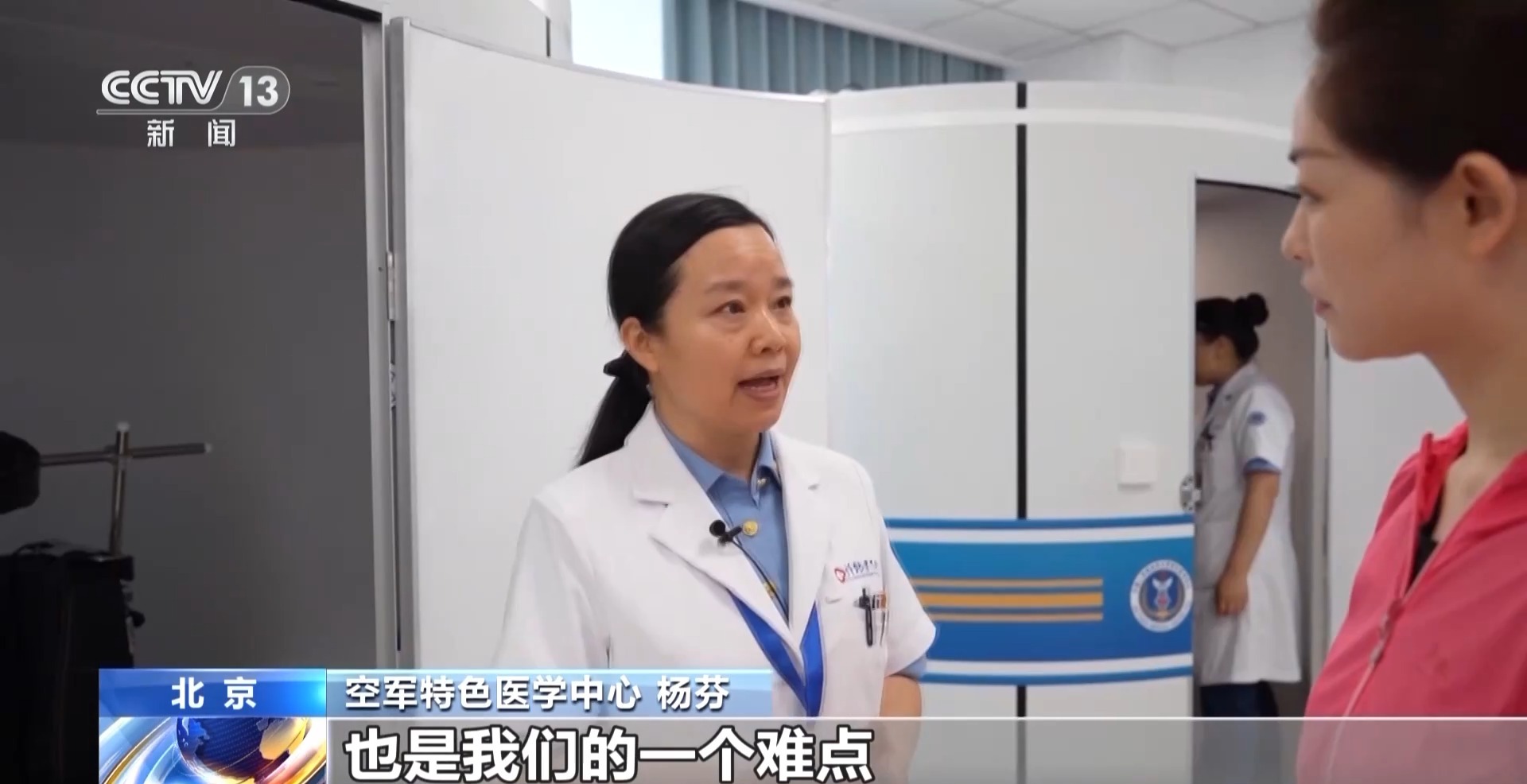*空軍特色醫學中心 楊芬:*抗眩暈能力評價是招飛選拔工作的重要環節,也是我們的一個難點。以往,主要是給招飛學員加速度的刺激,通過學員的主觀症狀,比如説,有沒有頭暈、噁心、嘔吐、出汗等等來判定。有了智能評價系統後,學員穿戴上多模態的數據採集設備,進入到動態旋轉艙,即時採集心電、皮電、腦電等電生理數據,交叉驗證,把前庭功能量化,對精準評價前庭功能具有重要的參考意義。