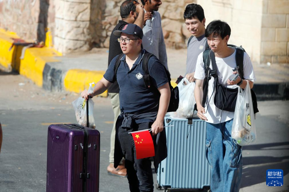6月19日,從以色列撤離的中國公民從埃及南西奈省塔巴口岸進入埃及。新華社發(艾哈邁德·戈馬攝)