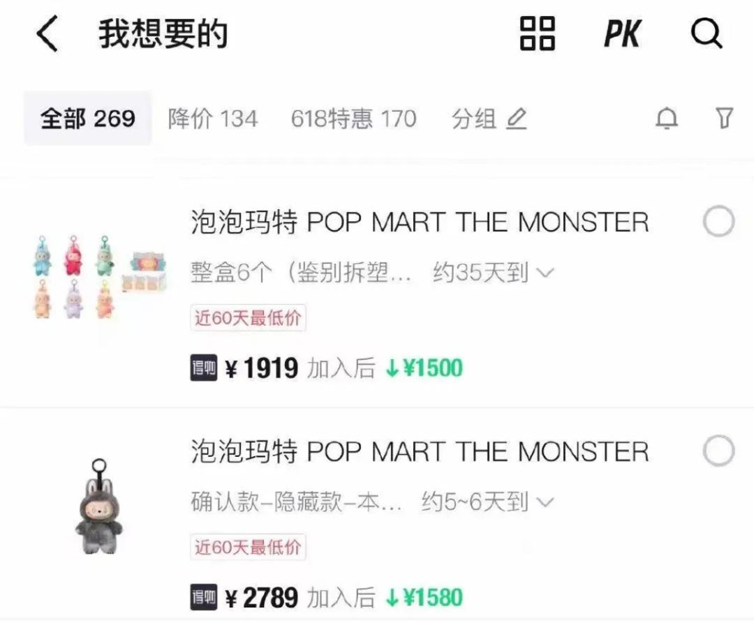 受泡泡瑪特官方大量補貨影響,Labubu在二手市場的交易價格突然暴跌。