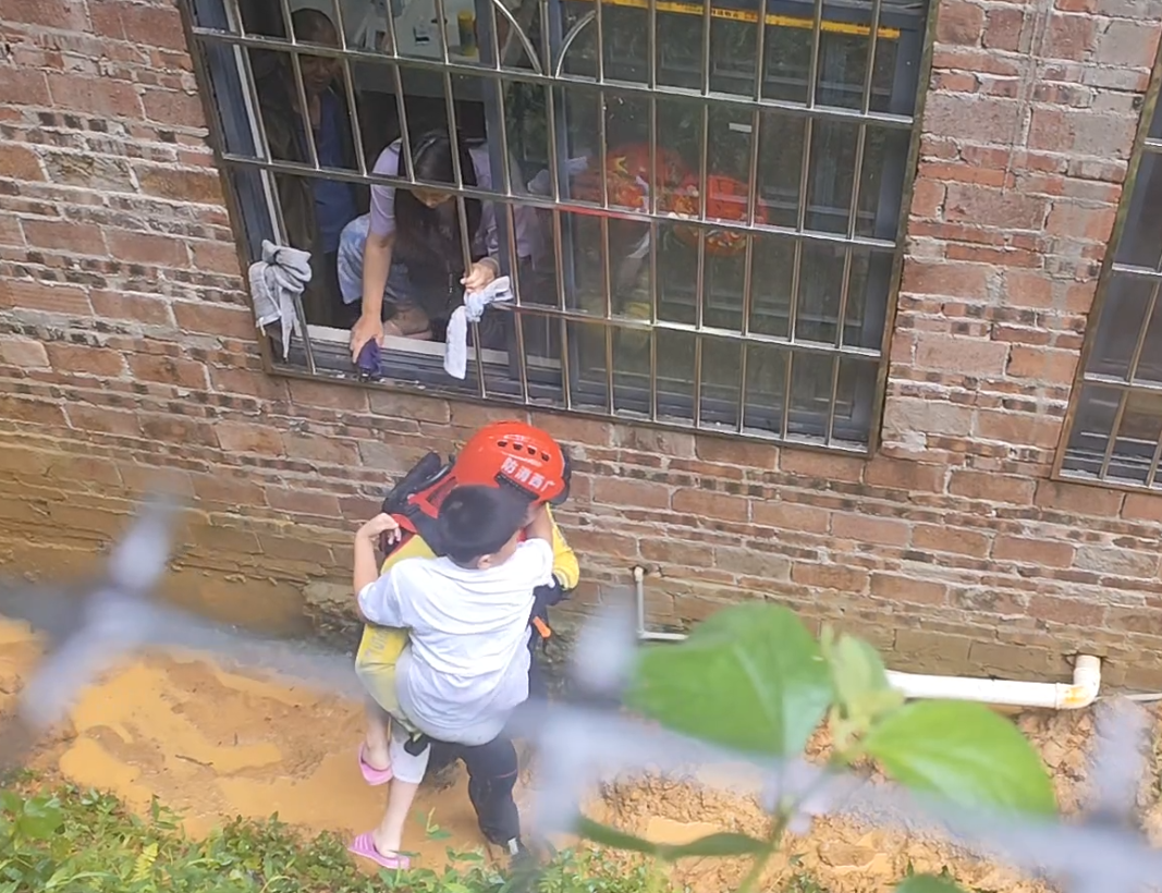 6月20日,三江侗族自治縣消防救援大隊雅桂消防站接到羣眾求助,在三江古宜鎮六合村,因河水暴漲,洪水蔓延至家中,羣眾急需轉移,消防人員疏散了3名大人,2名小孩。