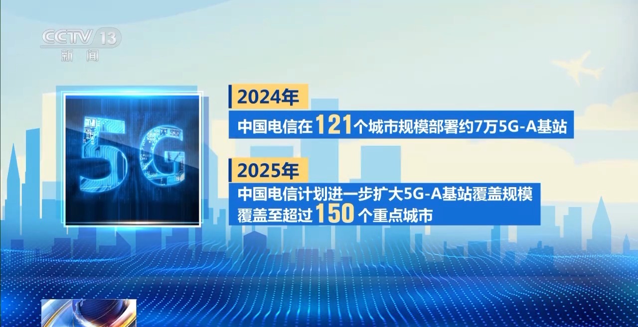 2024年,中國電信在121個城市規模部署約7萬個5G-A基站。2025年,中國電信計劃進一步擴大5G-A基站覆蓋規模,覆蓋至超過150個重點城市。