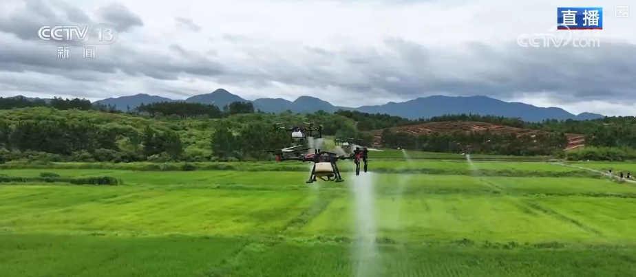 除了優秀的品種,當地也在持續推進科技賦能田間管理。植保無人機在稻田上空進行精準飛防作業,效率高、覆蓋勻、不傷苗都是它們的優勢。而現在農户只需要通過手機,就能預約“飛手”服務,大大提高了效率。