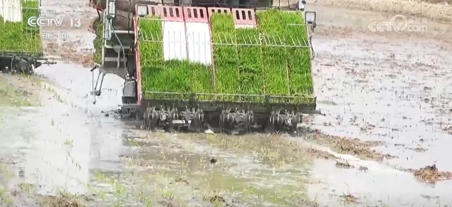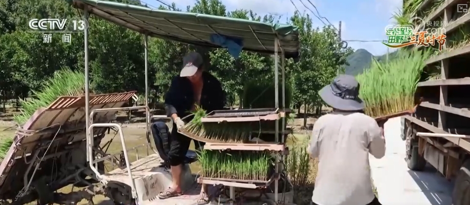 在武義縣履坦鎮的農田裏,農户們忙着將秧苗搬運上插秧機,伴隨着轟鳴聲,一株株秧苗被插入泥土中。農户介紹,這批種下的單季稻生長週期穩定,只要後續管護到位,預計10月就能收穫。