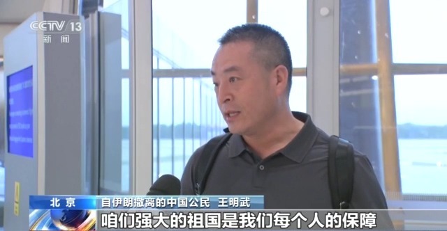 *自伊朗撤離的中國公民 王明武:*我們能平安順利回來,強大的祖國是我們每個人的保障,這個印象是深深地落在我們每個人的心裏面。