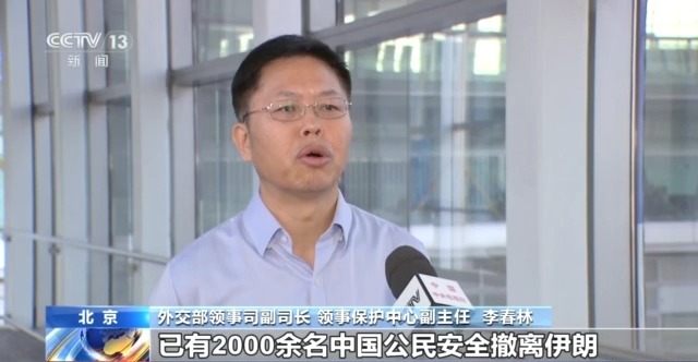 *外交部領事司副司長 領事保護中心副主任 李春林:*連日來,我們前後方不分晝夜,密集做相關國家工作,為同胞從陸路前往阿塞拜疆、土庫曼斯坦、亞美尼亞、約旦、埃及等國開闢轉移通道。截至目前,已有2000餘名中國公民安全撤離伊朗,數百名中國公民從以色列安全轉移。局勢仍在發展變化,我們將繼續堅持貫徹落實習近平總書記重要指示和黨中央決策部署,把外交為民牢牢扛在肩上,全力以赴開展工作,維護中國公民安全。