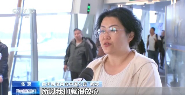 *自伊朗撤離的中國公民 魏婷:*祖國強大,有祖國來接我們,所以我們就很放心。