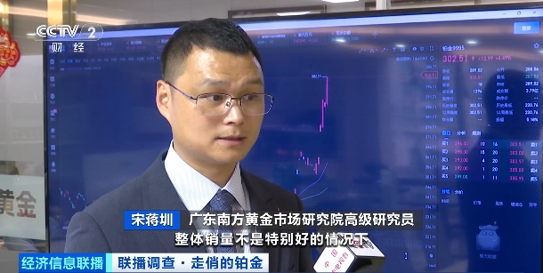 廣東深圳某珠寶企業董事長 張捷斌:鉑金受到市場追捧以後,銷售量有所上升,原來一個月銷售150公斤至200公斤,現在高峯期可能賣到四五百公斤,產品有點供不應求。一些小件的,比如套鏈、耳釘、戒指就會比較緊張。