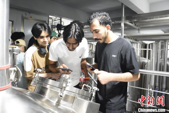 6月20日,外籍留學生參觀位於青島市膠州市的啤酒生產廠。王珊 攝