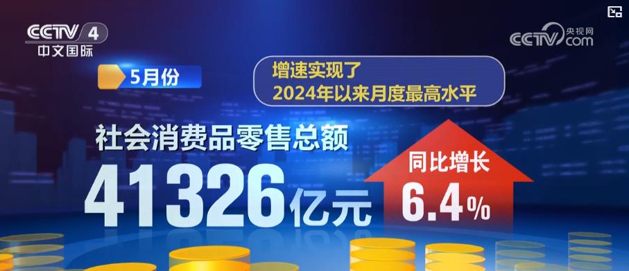 最新統計數據顯示,5月份,社會消費品零售總額41326億元,同比增長6.4%,增速實現了2024年以來月度最高水平。限額以上單位中,近九成商品類別零售額實現增長。消費市場回升向好的背後,新的增長點不斷湧現。