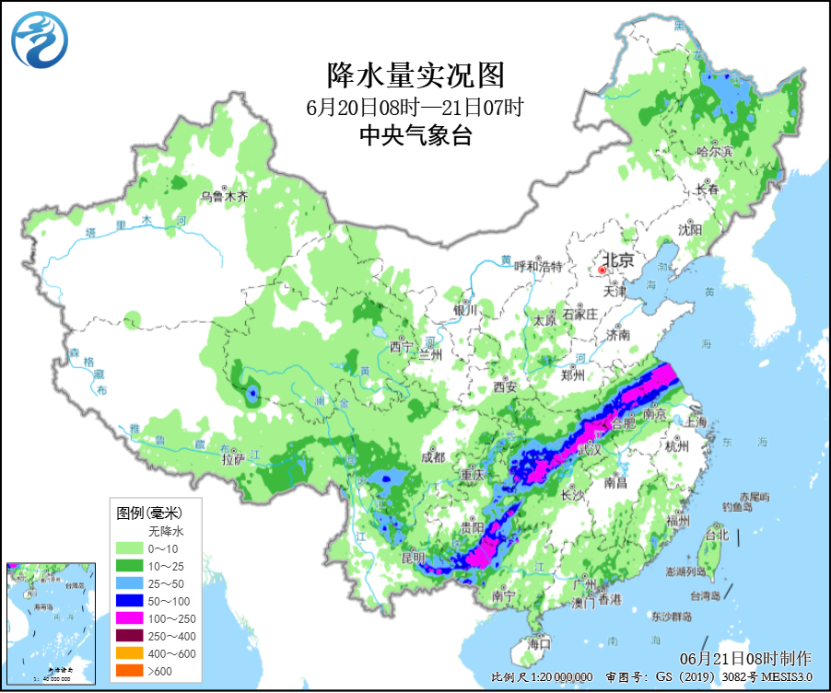 中央氣象台今晨繼續發佈暴雨橙色預警。預計今天,江蘇中南部、安徽中南部、江西北部、湖北中東部、湖南中北部和西部、重慶南部、貴州東部、廣西西部和北部、雲南中部和南部等地的部分地區有暴雨到大暴雨,其中,安徽西部、湖北東部等地局部地區有特大暴雨(250~270毫米)。上述部分地區伴有短時強降雨,最大小時降雨量20~50毫米,局地可超過70毫米,局地有雷暴大風等強對流天氣。
