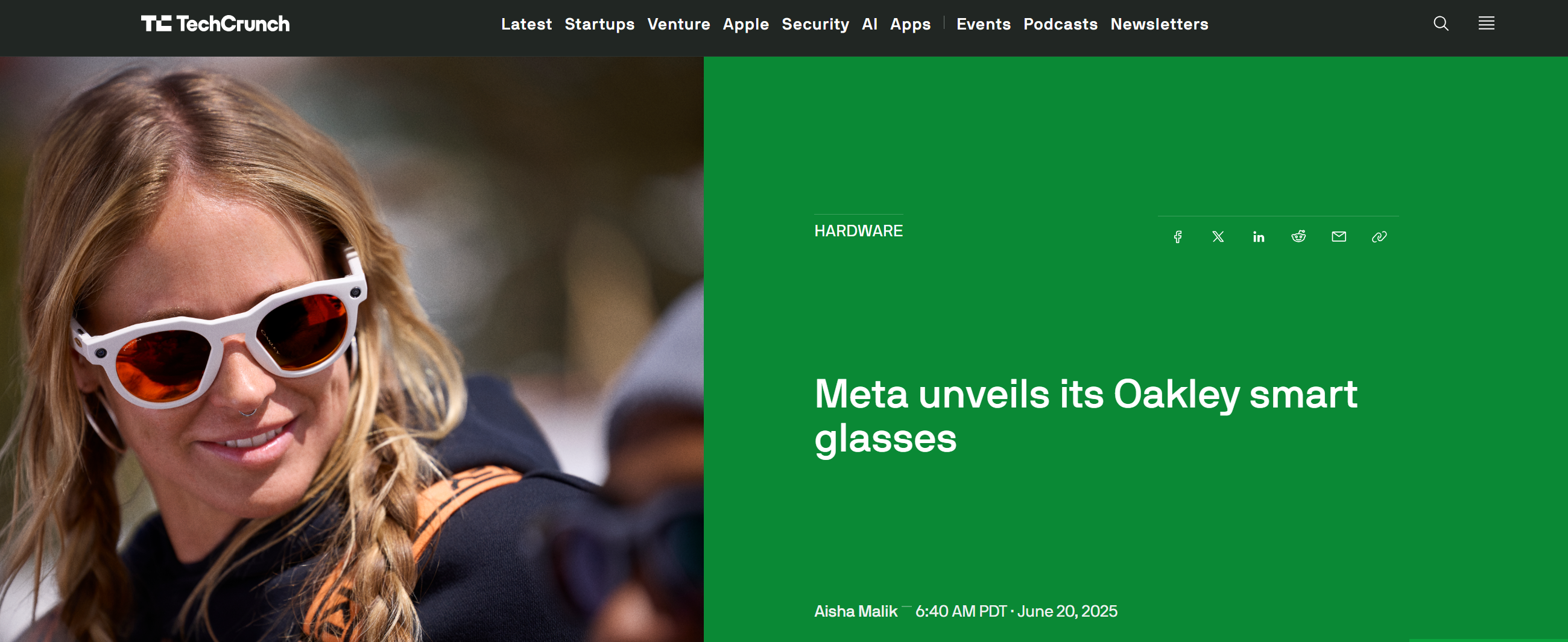 【環球網科技綜合報道】6月19日消息,據外媒報道,科技巨頭Meta近日宣佈與知名運動眼鏡品牌Oakley達成合作,將推出搭載人工智能技術的智能眼鏡產品,這是其在可穿戴技術領域繼 Ray-Ban Meta 智能眼鏡後的又一重要佈局。