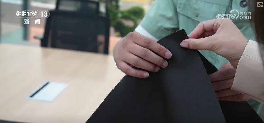 這塊黑色的碳布叫作電極,是決定着電池性能的關鍵材料,電極越薄電池性能越好。進口產品不僅價格昂貴,並且規格也不完全適用於釩液流電池。