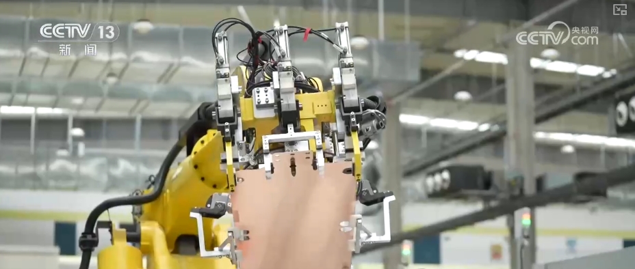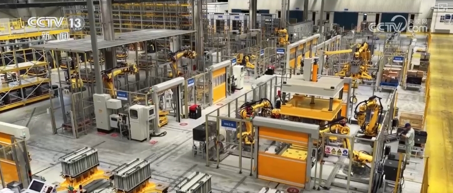 在這家企業的裝備車間,智能機器人來往穿梭,正與工人們協同作業。