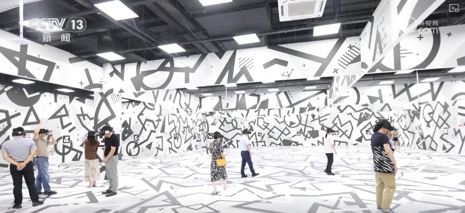 在光影匯的一樓,曾是傳統影院售票廳的位置變成了數字博物館。牆壁上的每一個紋樣都是一處二維碼,戴上VR眼鏡觀眾們就能瞬間進入文博場景。由眼鏡和算法聯動的“導覽”系統,讓上百名遊客可以同時在空間內漫步參觀而不發生碰撞。