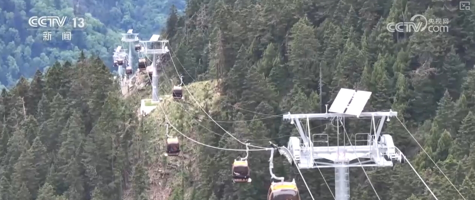 官鵝溝景區集湖泊、瀑布、森林、高山草甸等自然景觀於一體,海拔落差近2400米。隨着海拔逐漸升高,視野也變得開闊。在雷古山山腳下,遊客可以乘坐觀光纜車直達山頂。這條長度在2400米的纜車,帶遊客俯瞰山中景色,也成為大家歇腳的空中驛站。