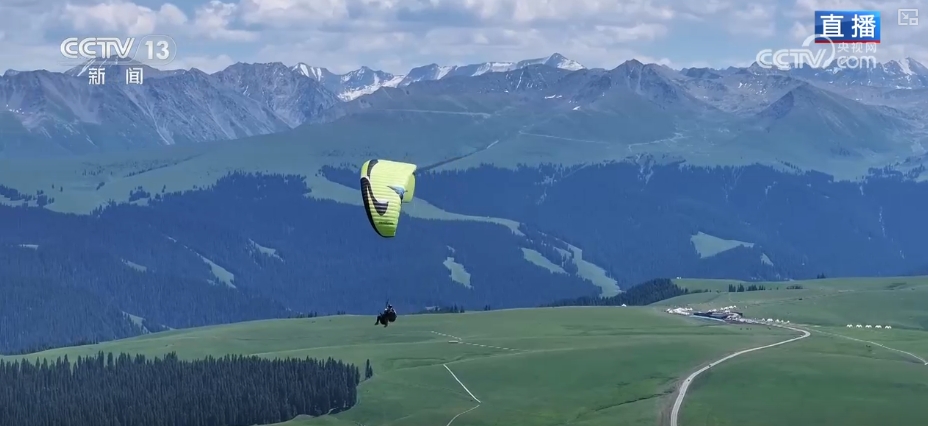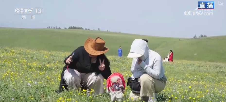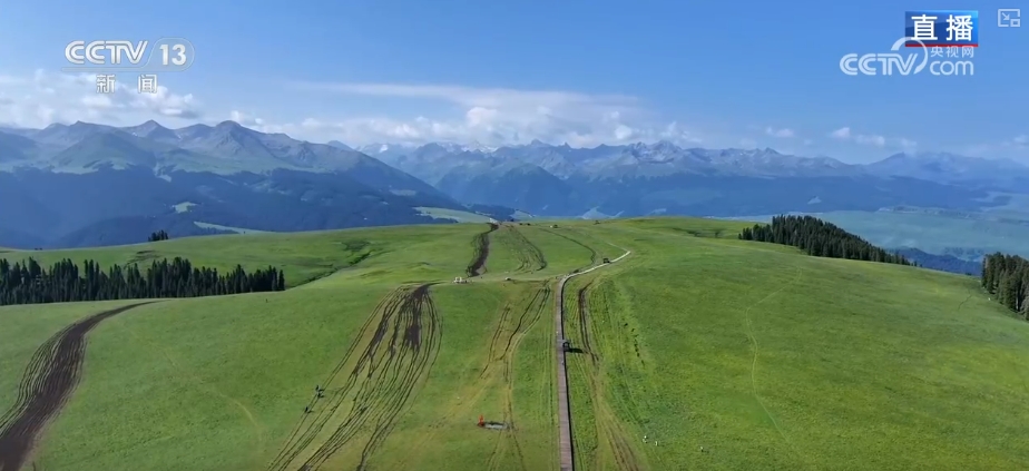新疆伊犁喀拉峻大草原被譽為“立體草原”。遠處的天山與碧綠的草原交相輝映,不少遊客拿出了手機在打卡拍照。喀拉峻的獨特之處在於它巧妙地利用高低起伏的地形,將草原、雪山、森林、河流、峽谷等多種自然元素巧妙地錯落佈局,從而呈現出層次豐富、變化萬千的壯麗景觀。
