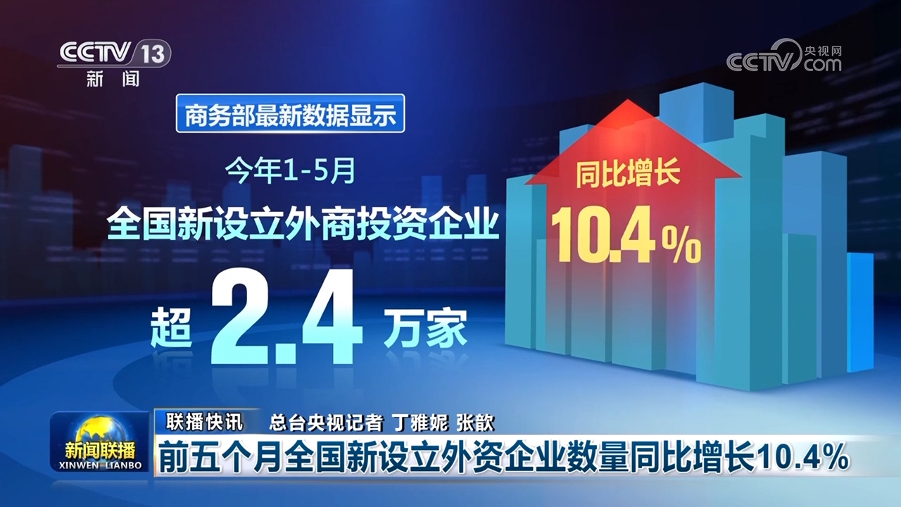 *央視網消息:*今年前五個月我國經濟成績亮眼:電子商務穩步增長、新型數字基建擴容提速、新設外資企業同比增10.4%……多領域舉措齊發,高質量發展成效顯現。