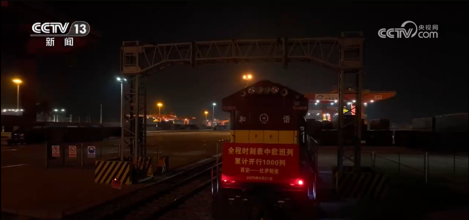 央視網消息: 記者從國鐵集團獲悉,6月21日3時55分,隨着X8155次全程時刻表中歐班列從西安國際港站駛出,全程時刻表中歐班列累計開行突破1000列。