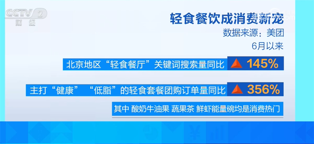 看好未來的增長潛力,這家輕食連鎖店計劃今年在全國範圍內新開設10家門店。6月以來,北京地區“輕食餐廳”關鍵詞搜索量同比增長145%,主打“健康”“低脂”的輕食套餐團購訂單量同比增長356%,其中,酸奶牛油果、蔬果茶、鮮蝦能量碗均是消費熱門。