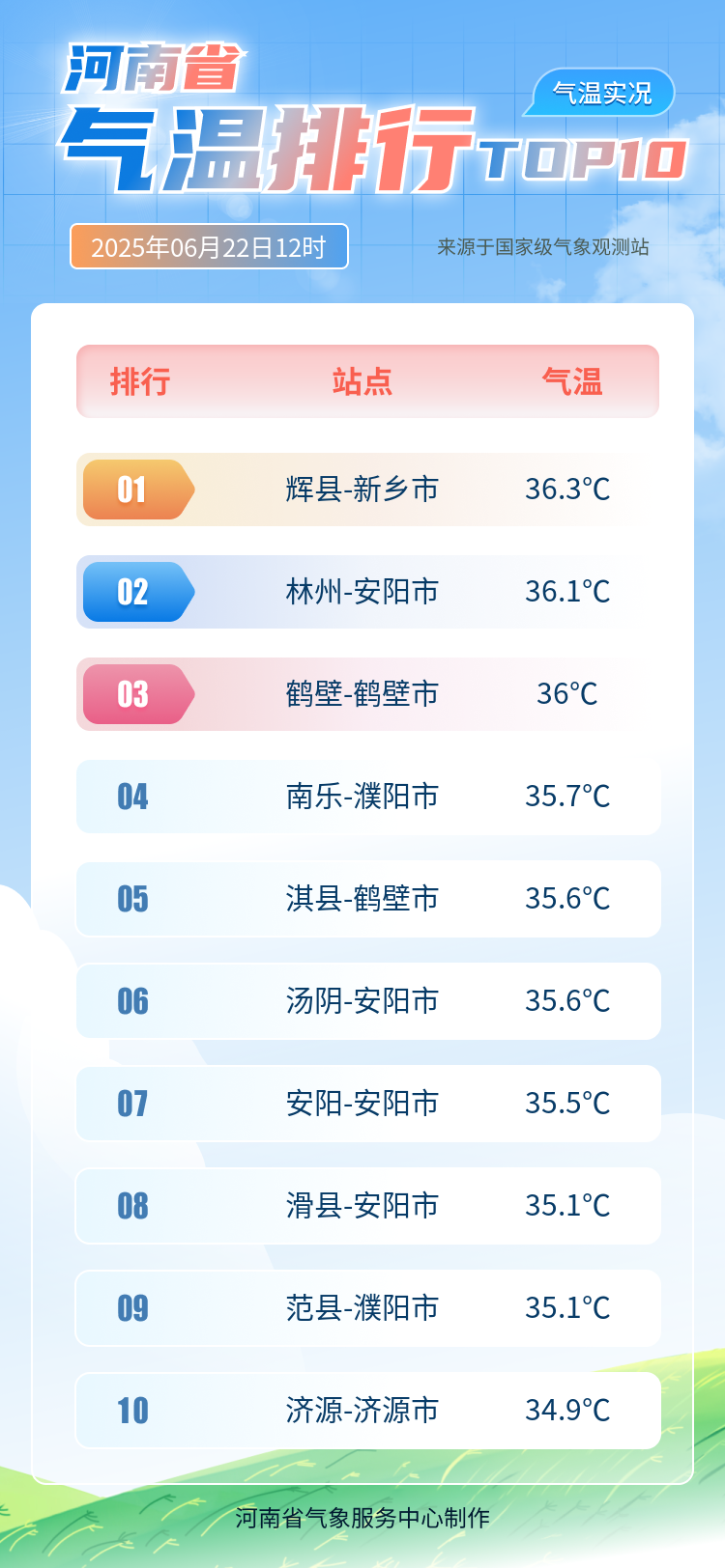 今天中午12點,輝縣、林州、鶴壁等9個國家站氣温超過35℃,預計明後兩天北部部分縣市維持35-37℃的高温,南部地區最高氣温不足30℃,其他地區大部在30-33℃之間。