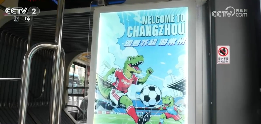 而在江蘇常州,以恐龍和足球為主題的大巴車和地鐵專列也正式開行。大家走進車內,到處都能看到恐龍和足球的可愛元素。
