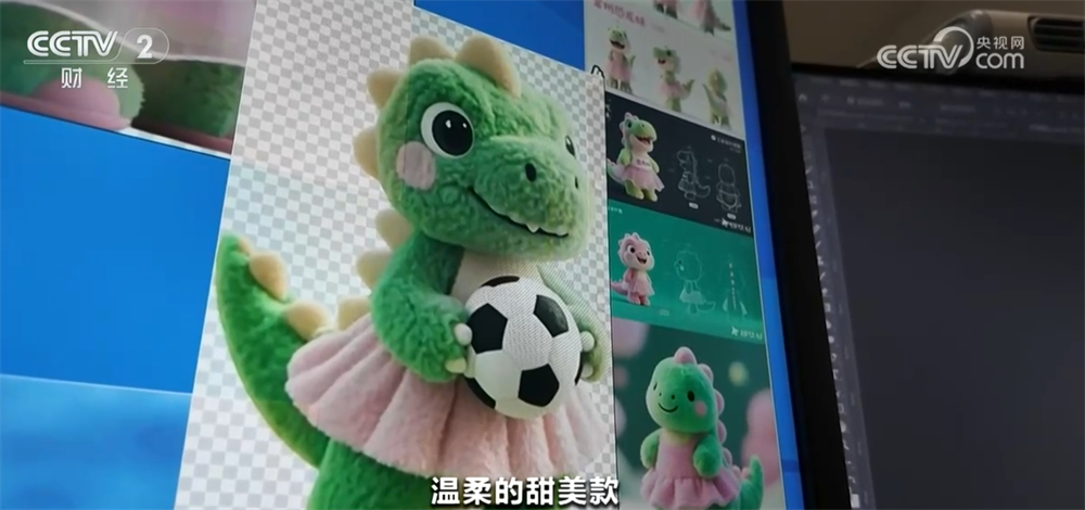中華恐龍園是常州的特色景點之一,“蘇超”聯賽的火熱及相關文旅創意方案讓這裏的文創產品也熱銷“出圈”。廣大網友集思廣益,用AI設計出“恐龍妹妹”的初代形象。中華恐龍園的文創設計團隊則迅速推出了“萌動全蘇·恐龍妹妹”系列玩偶,創意與情緒一拍即合,總銷量已超過15000件。