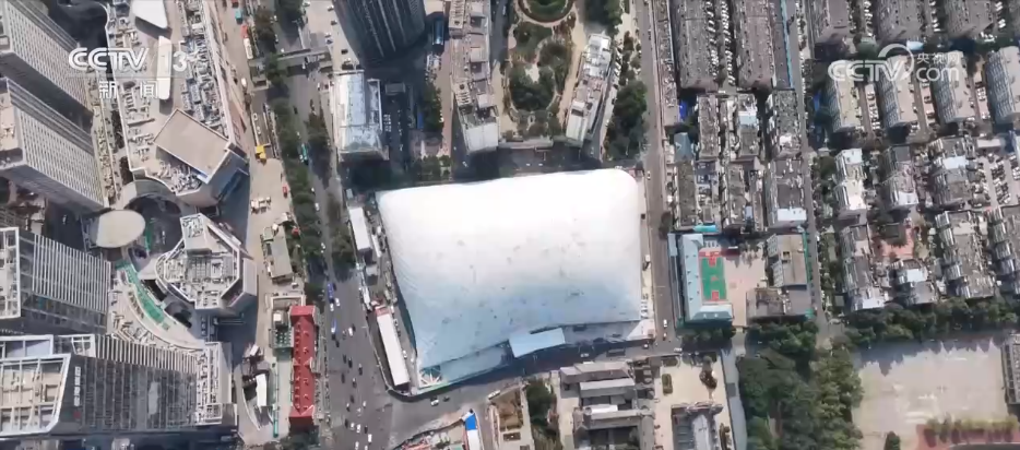 在濟南洪樓商圈核心區,這座高約50米,佔地約2.5個足球場大小的“巨型抱枕”格外醒目。經瞭解,原來這座白色巨型“穹頂”的內部正在建設一個大型的商業綜合體,因為施工位置與學校、居民區和歷史建築僅一路之隔,為了減少施工過程中產生的塵土、噪音對周邊居民、建築的影響,施工單位就啓用了這個“巨型抱枕”,它的專業名稱叫“氣承式基坑氣膜”。可別小看這氣膜,它就像是施工現場的“綠色防護罩”,能夠阻隔90%的揚塵、降低80%的施工噪音,還能防風抗雨雪,即使在雨季,施工也能照常推進。