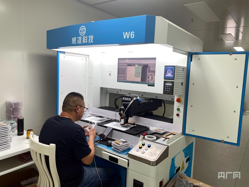 企業車間內的自動點膠機(央廣網記者 唐磊 攝)