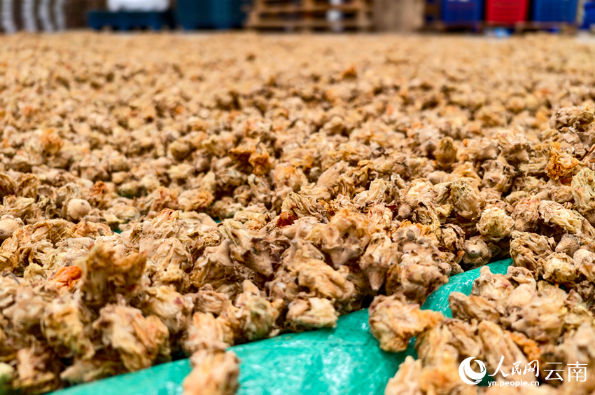 莊子田村晾曬等待出售的仙人掌花。人民網 尹馨攝