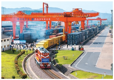中歐班列是“一帶一路”倡議的標誌性成果。目前,中國已有128個城市開通了中歐班列,通達歐洲26個國家的229個城市以及亞洲11個國家的100餘個城市,平均不到半小時就有1列發車。中歐班列運行高效穩定暢通,不僅架起亞歐經貿往來的橋樑,也為沿線國家注入發展動能。