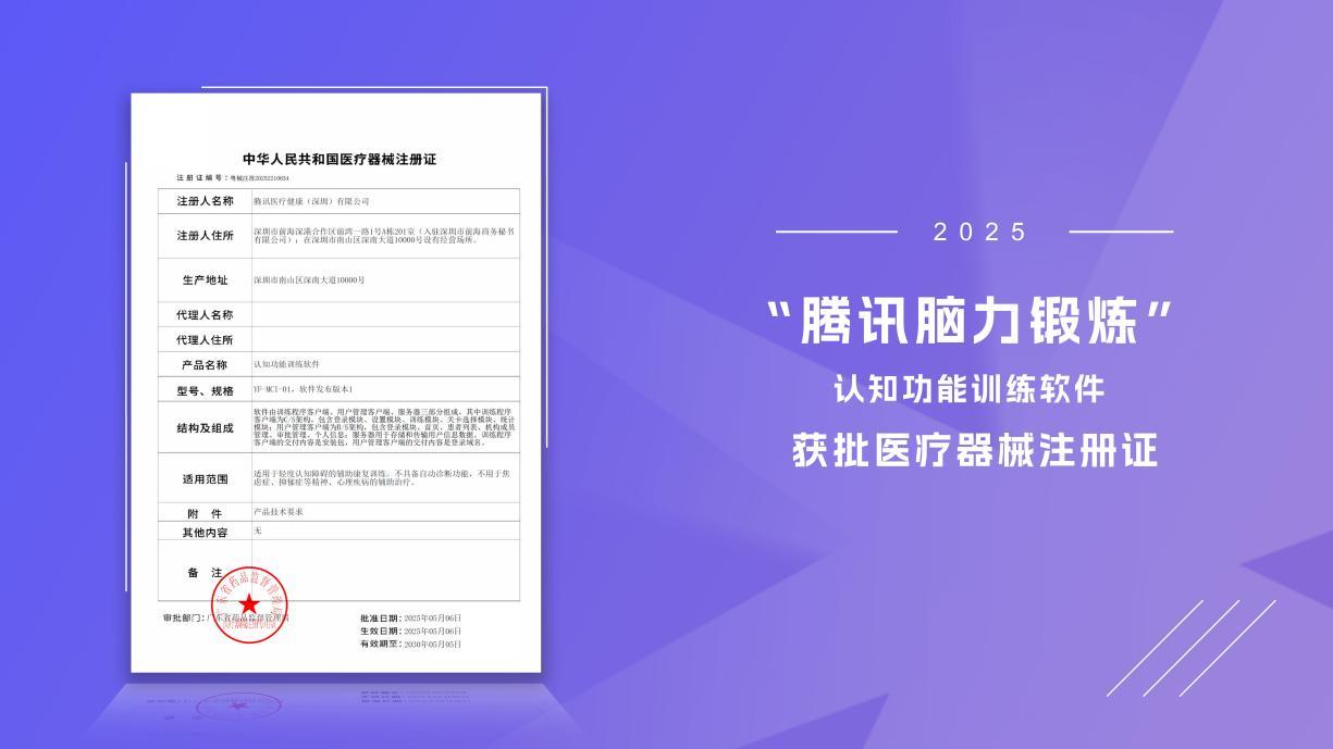 “騰訊腦力鍛鍊”認知功能訓練軟件獲批醫療器械註冊證