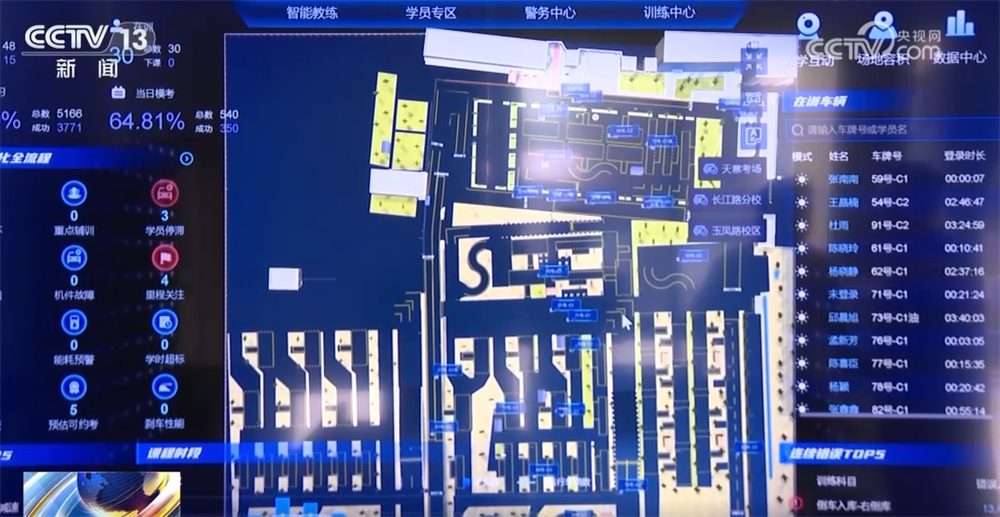 為適應年輕學員的學習需求,駕校引入AI機器人和智慧教學平台,通過科技賦能提升培訓體驗。一名教練可通過中央控制枱同時監控10輛訓練車。