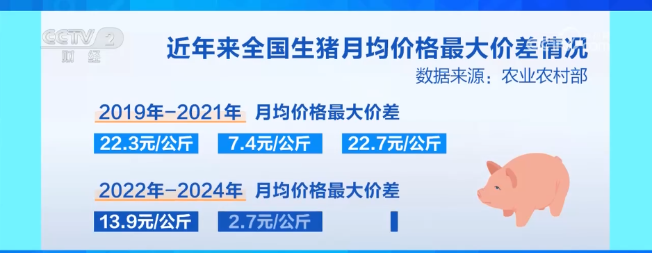 據介紹,農業農村部自2021年開展生豬產能逆週期調控以來,生豬市場價格波動明顯收窄,產能增減更為有序有度。2019年—2021年,生豬月均價格最大價差分別為每公斤22.3元、7.4元、22.7元,2022年—2024年最大價差分別收窄至每公斤13.9元、2.7元和5.8元,今年以來生豬價格波動幅度繼續收窄。專家表示,今年1—5月份,生豬月均價最大價差僅為1.6元,農業農村部在去年9月份及時發佈產能過剩預警信息,採取多種措施遏制產能過快擴張。5月末,全國能繁母豬存欄量4042萬頭,較去年年末高點減少了38萬頭。