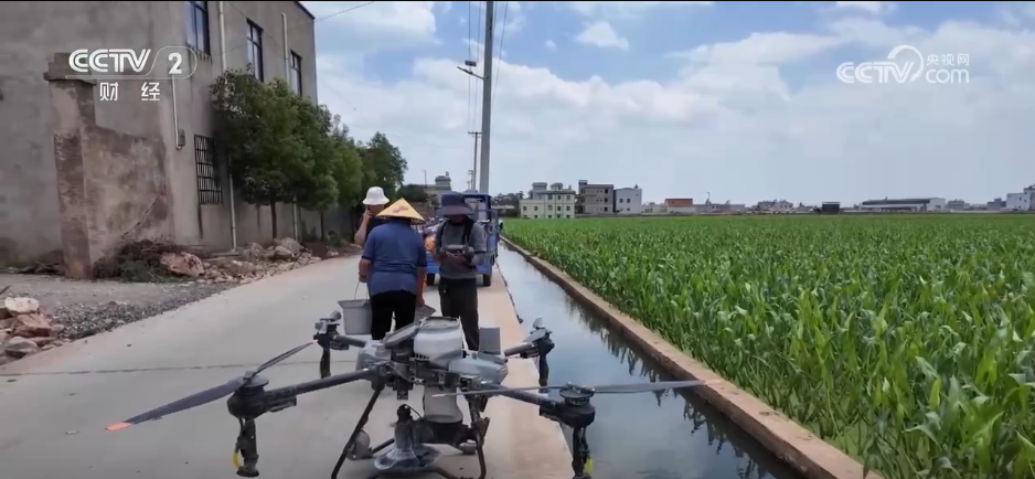 通過農技人員提供的精準服務,及時發現並處置各類病蟲害問題,確保早發現、早防治。記者在茨菇田裏看到,今年農户播撒肥料,用上了植保無人機。