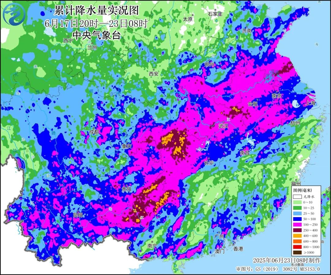 截至23日08時,廣西北部、貴州東南部、湖南西北部、湖北西南部、安徽西部等局地累計降水量400~700毫米,廣西柳州融水局地達1118.2毫米。
