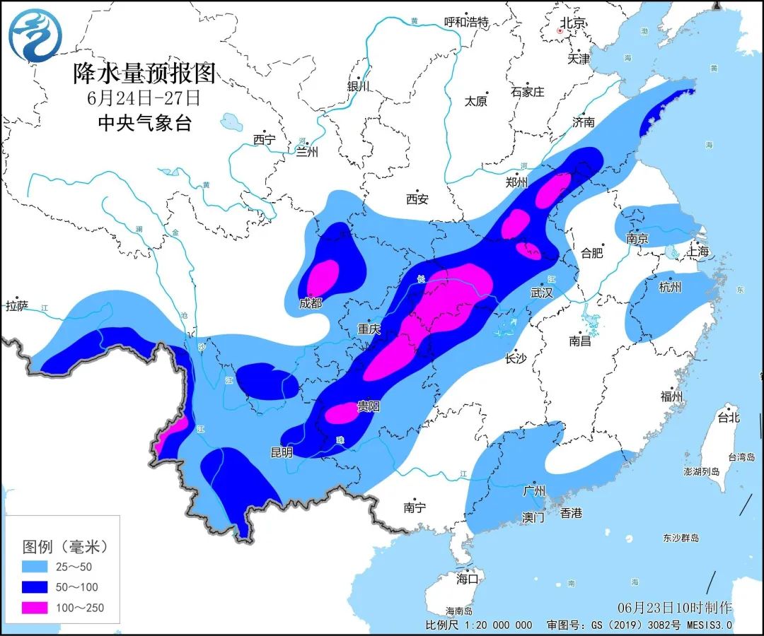 中央氣象台:24日至27日西南地區東部江漢黃淮有較強降雨 川渝黔湘鄂等地警惕降雨疊加效應