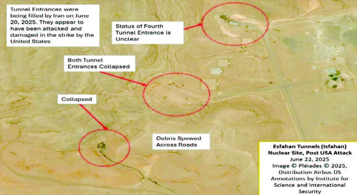 CNN稱,傑弗裏·劉易斯仔細審查了伊斯法罕核設施的最新衞星照片後認為,該設施的損壞似乎僅限於地上結構。與另外兩處伊朗核設施的遭遇不同,美軍並沒有出動B-2轟炸機向伊斯法罕投下鑽地炸彈。“這是一次不完整的打擊”,劉易斯説,“如果這就是美軍空襲的全部,那麼伊朗約60%的濃縮鈾庫存可能得以保留,通常這些濃縮鈾就儲存在伊斯法罕的地下隧道中,沒有受到任何影響。”報道稱,雖然有跡象表明伊斯法罕核設施的地下部分被導彈命中,但該設施有多層隧道,尚不清楚損壞程度。此外,“戰斧”巡航導彈儘管命中精度較高,但對於地下加固目標的打擊能力有所欠缺。
