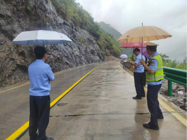 6月20日11時許,凌雲縣交警大隊在泗城鎮二台坡路段巡查時發現邊坡有較大水流流下,並伴有部分石塊,隨即向上級報告。自然資源局協同泗城鎮人民政府、凌雲縣應急管理局等相關部門研判分析,判定邊坡發生崩塌的風險大,建議立即封閉道路。交警大隊與應急管管理局當即封閉下方道路,泗城鎮人民政府聯繫通知後龍村委封閉上方道路,勸阻過往車輛。20日11時30分,二台坡路邊邊坡發生塌方,總方量約990立方米,覆蓋全幅路面,導致交通中斷。因預警精準、勸阻及時,避免人員車輛受到損傷,勸阻車輛110台。