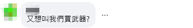 有網友提出質疑:“又想叫我們買武器?”“要多少保護費?”