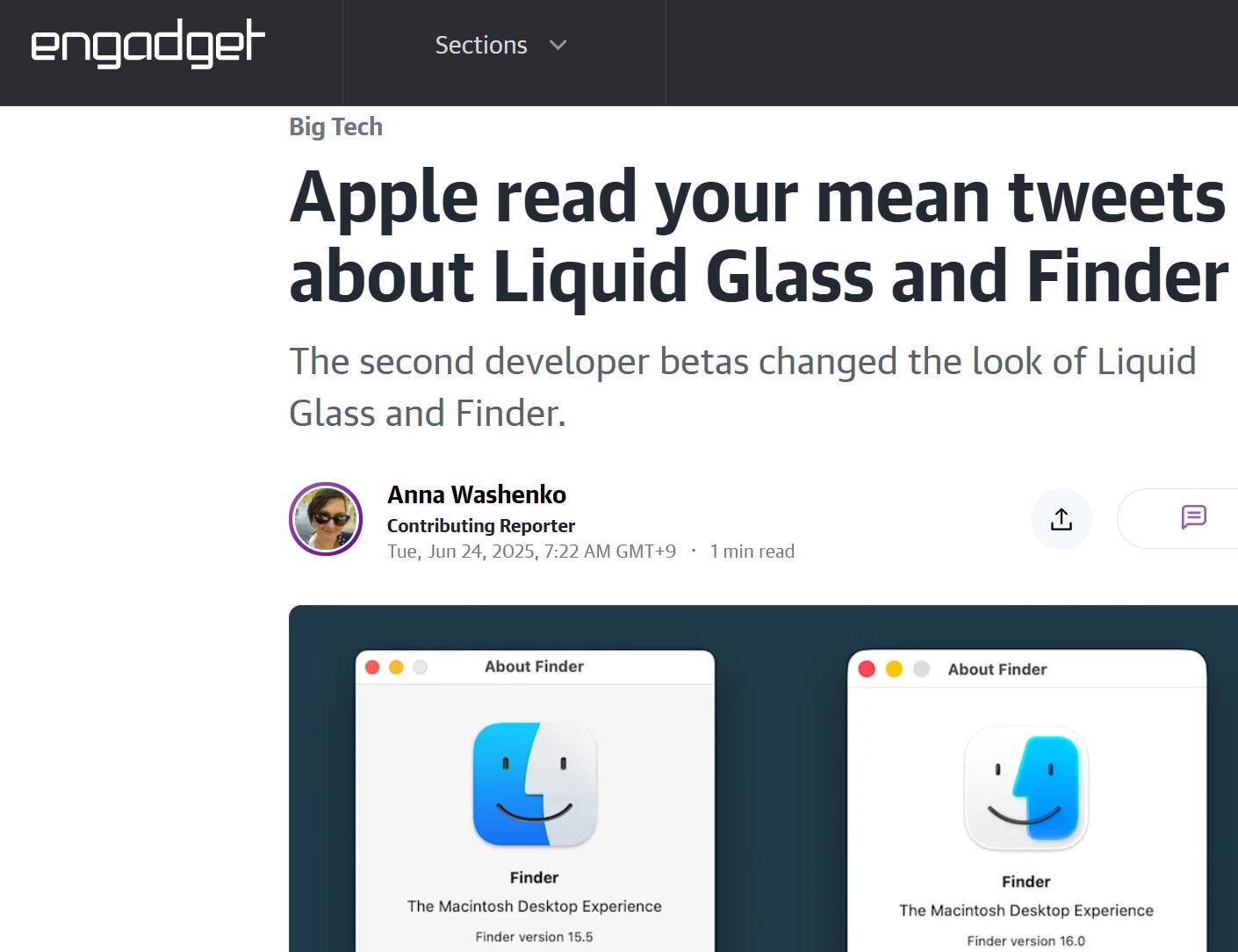 【環球網科技綜合報道】6月24日消息,據engadget報道,在2025年全球開發者大會(WWDC)上,蘋果公司展示了其下一代操作系統的一些新視覺元素,包括備受討論的“液態玻璃”設計和Finder應用圖標的更改。然而,這些改動在用户中引發了廣泛討論,部分用户對新設計提出了意見。蘋果迅速響應,在最新的第二個開發者測試版中對這些設計進行了調整。