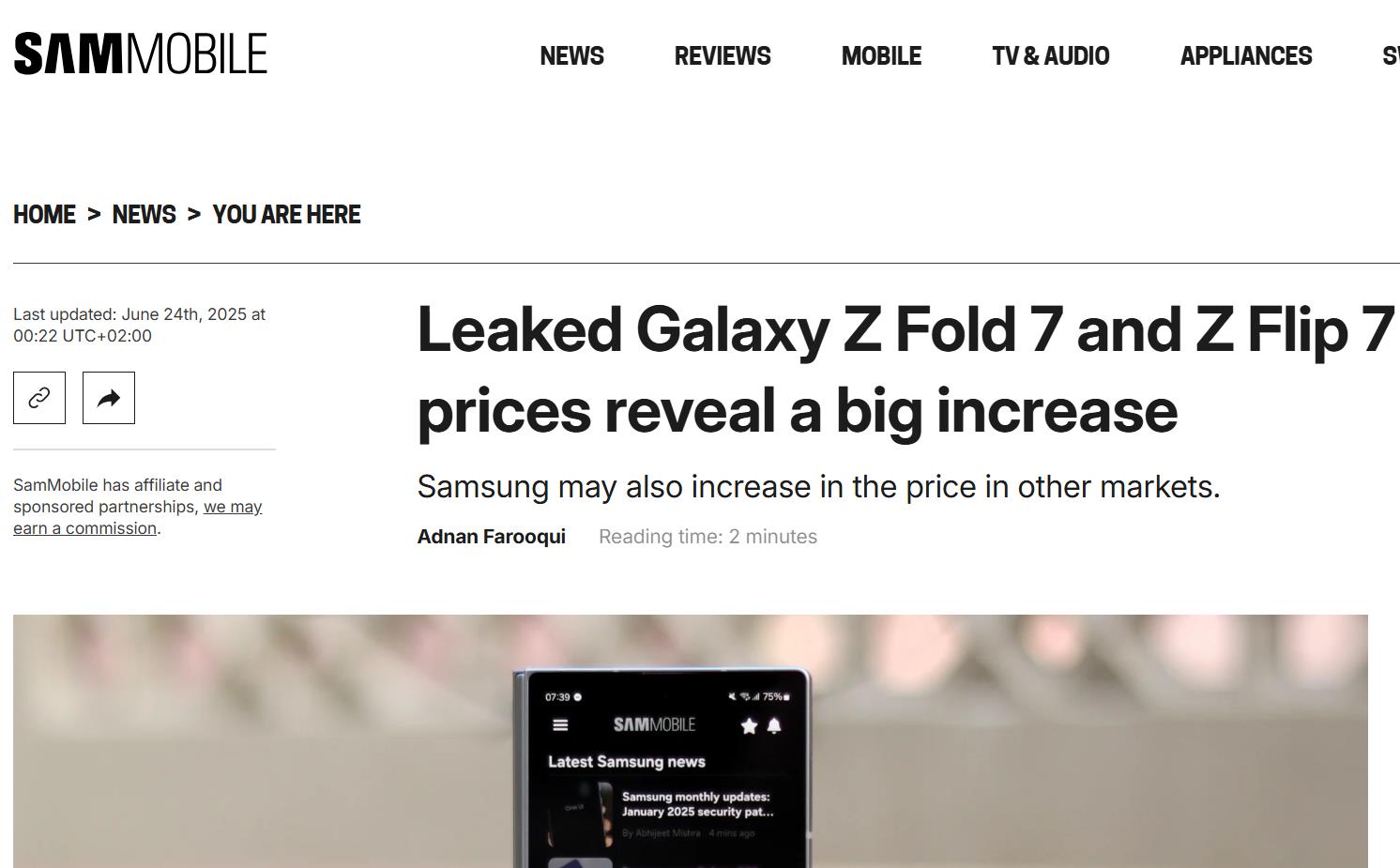 三星 Galaxy Z Fold / Flip7 摺疊屏手機在歐洲漲價,其他市場或跟進