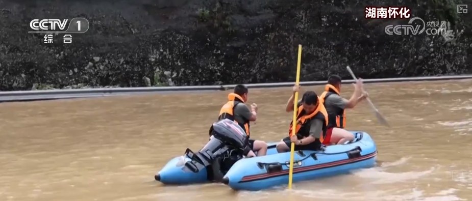湖南懷化通道侗族自治縣人武部應急分隊救援隊隊員石章勇介紹,水流得急,衝鋒舟開上去馬力太小,如果開得馬力大會掛底,很危險,他們從河邊把船拉上去,慢慢地往上推。
