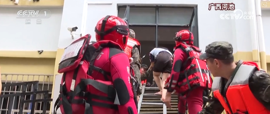 6月22日,廣西河池市天峨縣因持續強降雨引發洪水倒灌,導致城區多處出現嚴重內澇。天峨縣民族中學積水嚴重,校內即將參加中考的430名學生被圍困在宿舍樓。情況緊急,當地迅速組織力量開展救援。