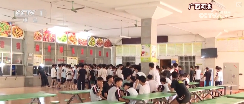 廣西河池天峨縣教育局局長黎玉果介紹,宿舍、考點就設在天峨高中,目前已經全部轉移到天峨高中。為了解決學生的用餐問題,他們借用天峨高中的食堂。