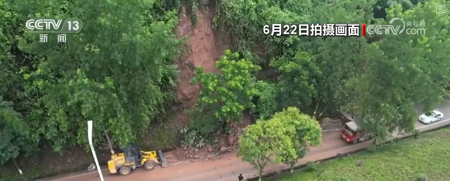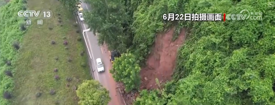 從本月18日開始,重慶雲陽縣出現持續強降雨。6月22日上午,雲陽縣境內省道的一處路段發生邊坡垮塌,導致道路受阻。當地多部門迅速組織人員前往現場處置。