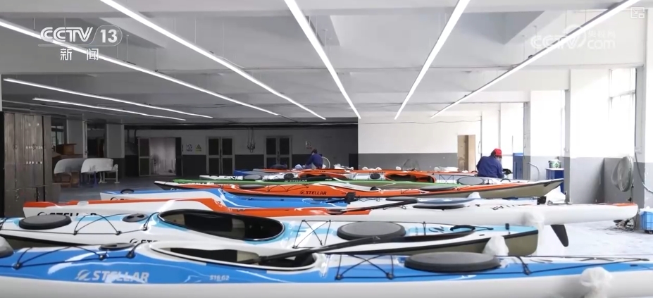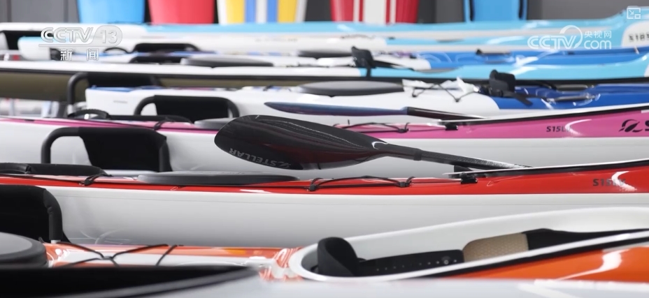 某水上用品製造企業負責人金音介紹,他們用航空航天的工藝技術製作賽艇,首創的一次成型技術,在結構上還有一些突破,排水系統有發明專利。