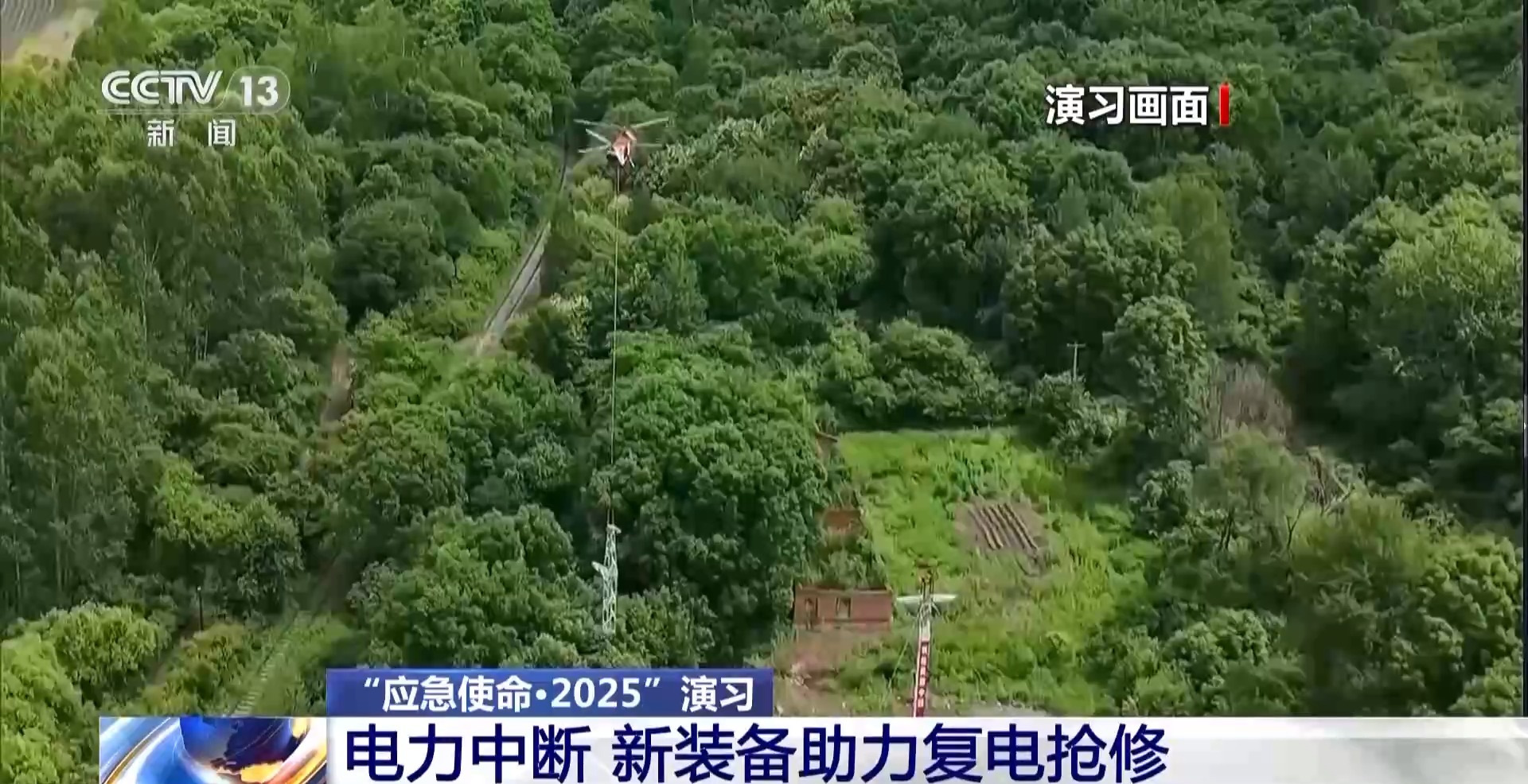 穿行崇山峻嶺間的輸電塔一旦損毀,由於道路難行,修復最為艱難。演習中,中國能建展示了無人機高壓輸電塔模塊化快速組裝技術。