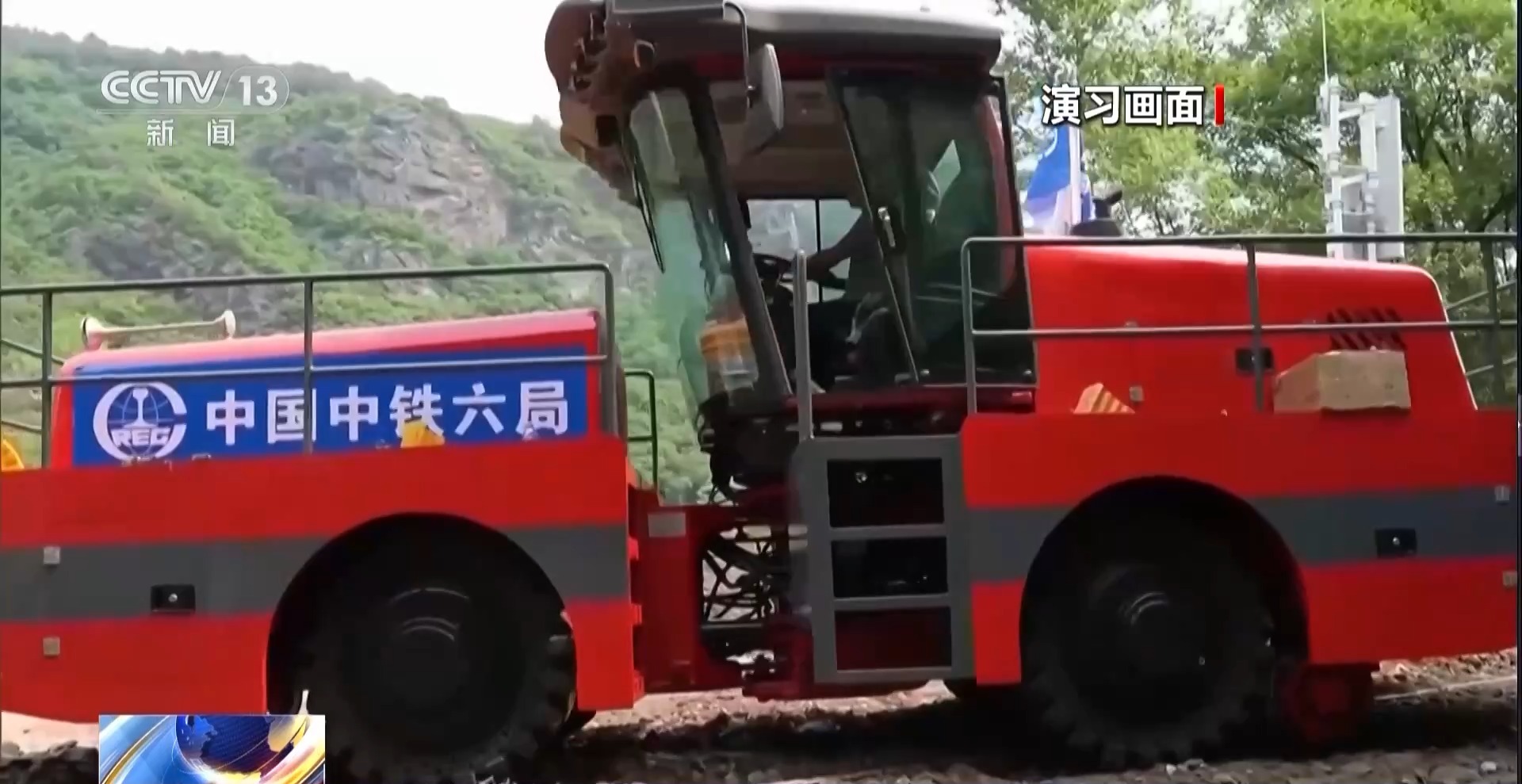 面對鐵路路基多處損毀,一列形似火車頭的牽引車從公路駛來。這是中國中鐵研發的2000噸級公路、鐵路兩用牽引車。它比傳統的火車頭底部多了兩排橡膠輪胎。