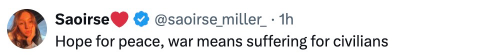 有網友稱,“希望(實現)和平,戰爭意味着平民受苦。”