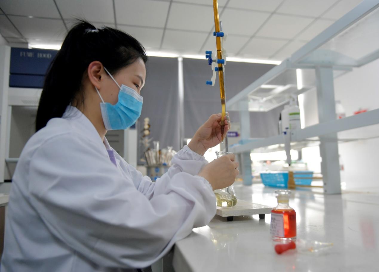 走進公司的生產車間,自動生產線高效運轉,一粒粒晶瑩剔透的魚油膠囊如金色的瀑布般順着傳送帶流淌,隨後被灌裝、密封。“我們一條生產線一天就能產出近240萬粒魚油。”生產線線長張孝傑的語氣裏滿是自豪。